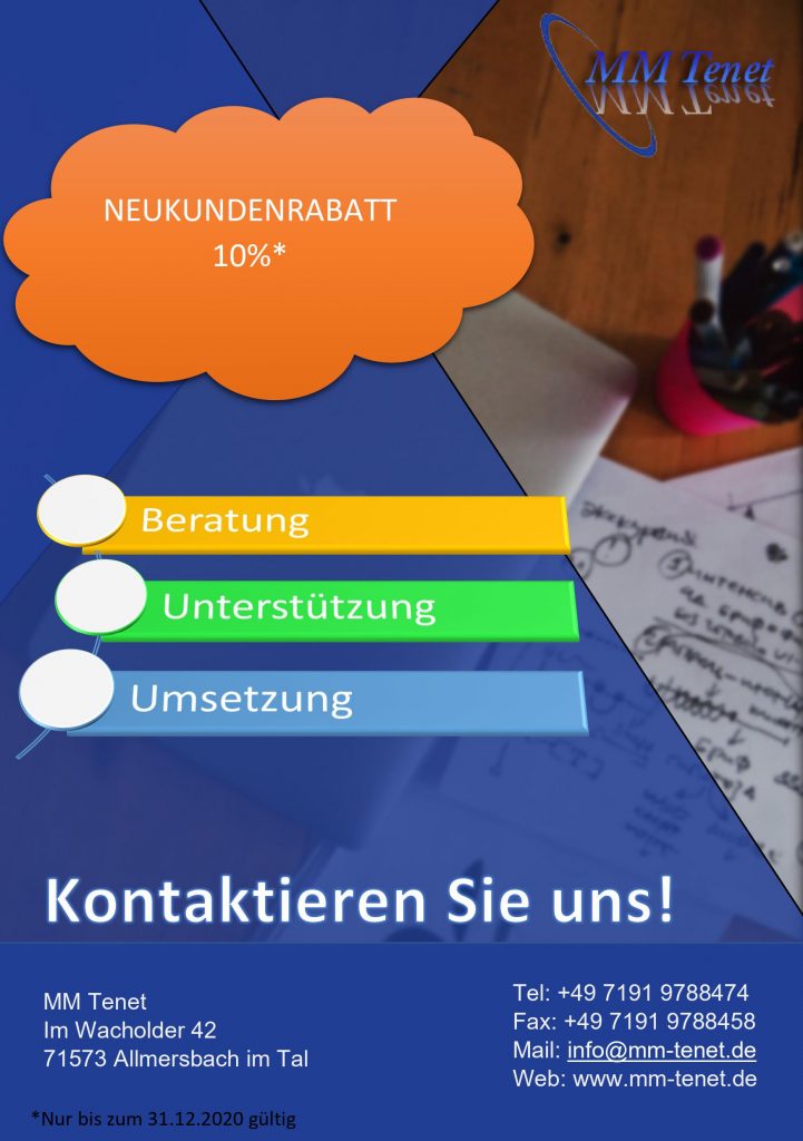 Wir würden uns sehr freuen sie als Kunden gewinnen zu können und bieten ihnen somit einmalig einen Neukunden Rabatt bis zu 10% (Weitere Informationen finden sie im Flyer).